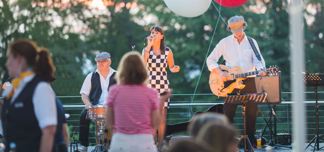 – auf einer Sommerterrasse im Freien, als auch auf einer Konzertbühne –